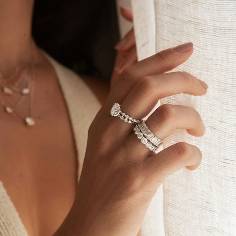 Freshwater pearls are a flawless gem for the minimalist among us. Seek sleek chic designs of pearls set as a pendant, a simple necklace strand, or even dainty stud earrings. A singular piece of jewelry can uplift your wardrobe, providing a polished office look, a sexier date night dress, or liven up a basic T-shirt.
