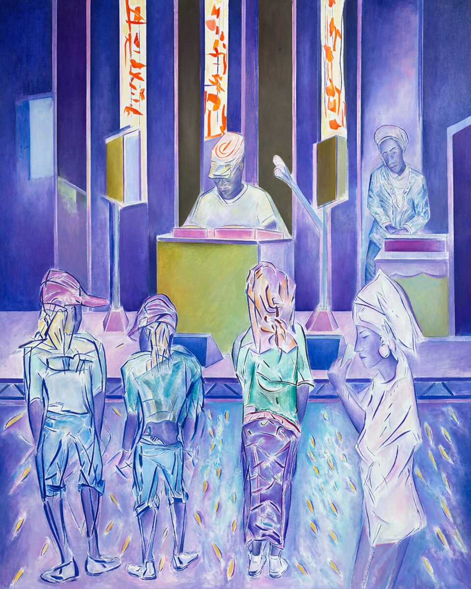 At the centre of the exhibition are the vibrant paintings of Denzil Forrester, capturing the dynamic energy and sense of community of East London’s reggae and dub nightclub scene during the 1980s and 1990s.