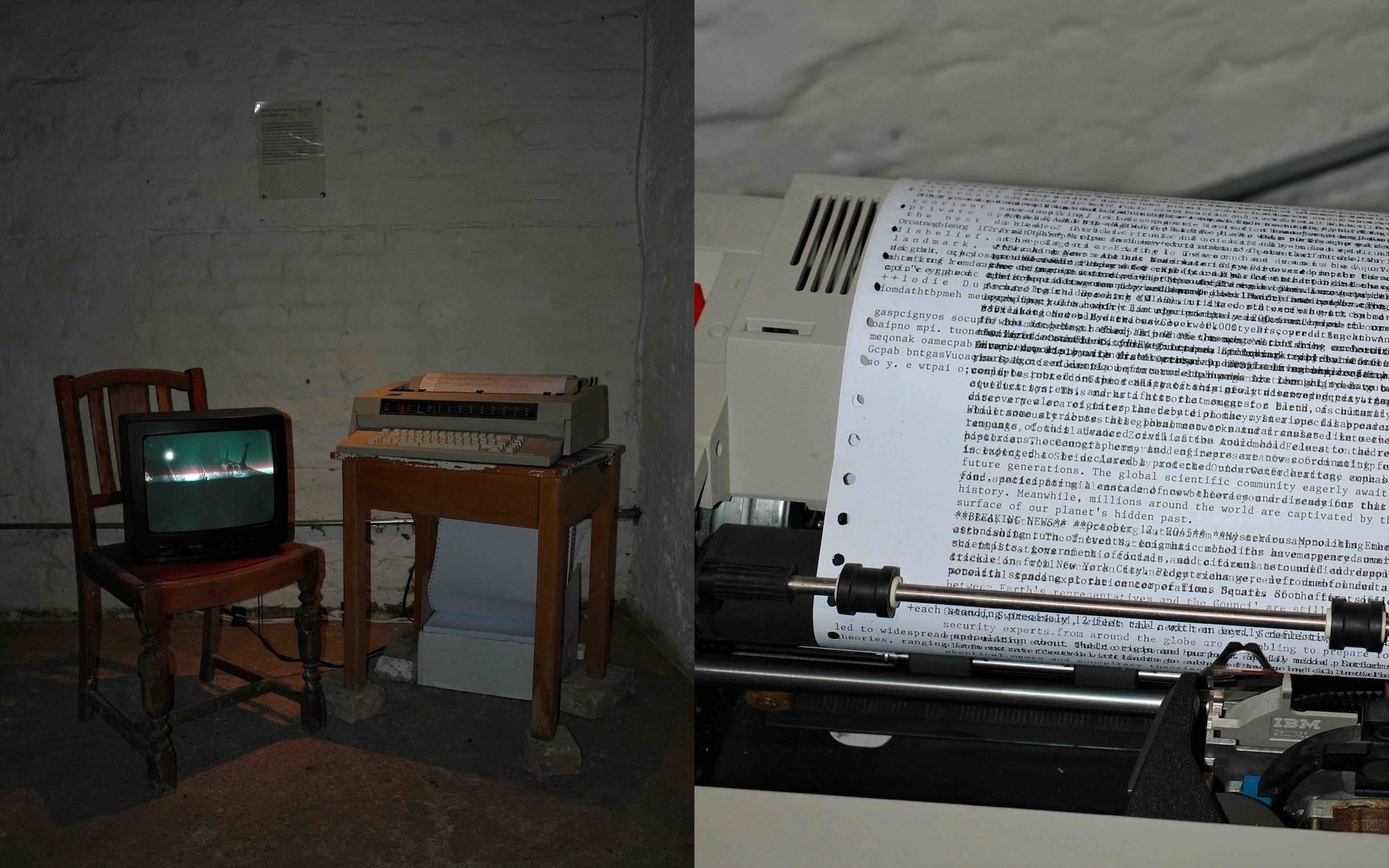 This domestic space, stripped of homeliness, functions as a shrine to technological obsolescence. Its decaying furnishings recall the tactile past of analogue media, overlaid with digital futures. Here, the ghost in the machine is made tangible, with AI reanimating forgotten news through nostalgic machinery.