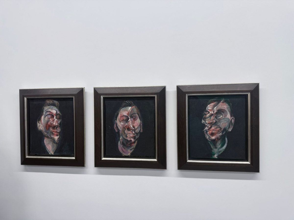 I found temporary solace in Bacon, not in a bap, but on the wall, via a forced triptych of portraits showcasing the textbook Bacon facial flutter, which were given their own steroid-sponsored security personnel, to guard.