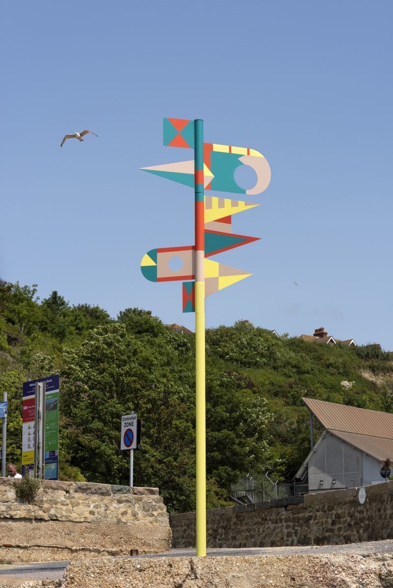 Céline Condorelli’s new work consists of a series of flag sculptures which unfold and invite a journey to and from the sea, a celebration of Folkestone’s rich and multi-faceted relationship to the sea – as a place of work, as a space for recreation, of danger, of fun, of contemplation, a source of relaxation, of anxiety, of reminiscence and of life. The work will be accompanied by a special podcast, bringing the artist into conversation with a range of different sea workers. This work forms part of the Folkestone: A Brighter Future project.