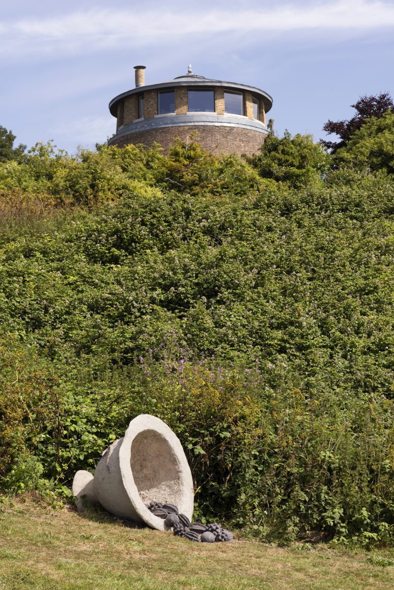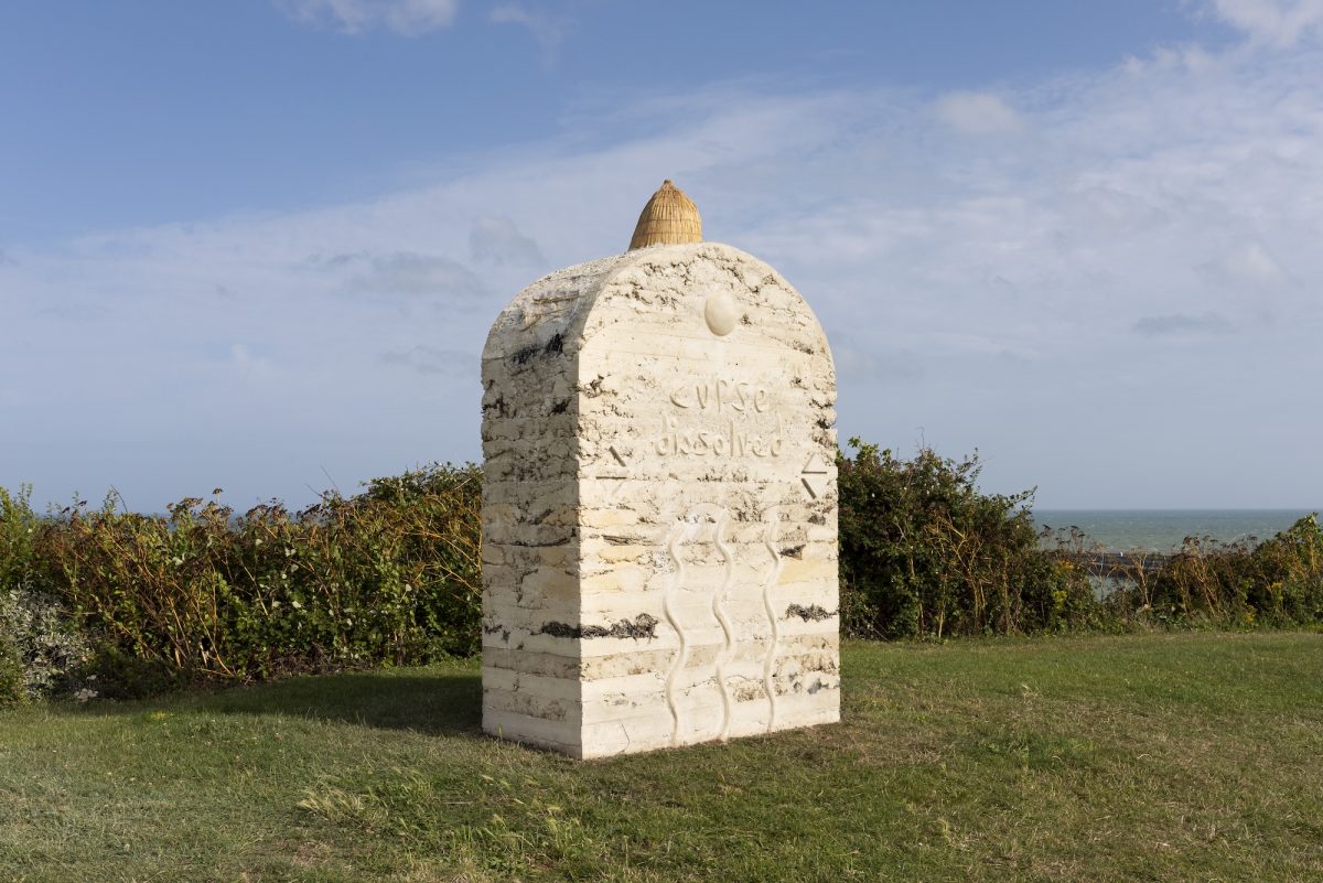 Sara Trillo’s Urn Field on the East Cliff is a series of new sculptures inspired by the Cheriton Urn Field finds, and the archaeological drawings produced at the time of their discovery. In 1948 Folkestone workmen discovered dozens of ancient pots buried from an Iron Age burial ground where the charred bones of men, women and children, who had been cremated when they died, had been gathered up and buried in small pots (called cinerary urns). Working with chalk cob to create large-scale sculptural silhouettes shaped like pieces of broken pottery, Trillo’s sculptures incorporate plants growing on the site, each chosen for their association with ritual as well as active healing powers.