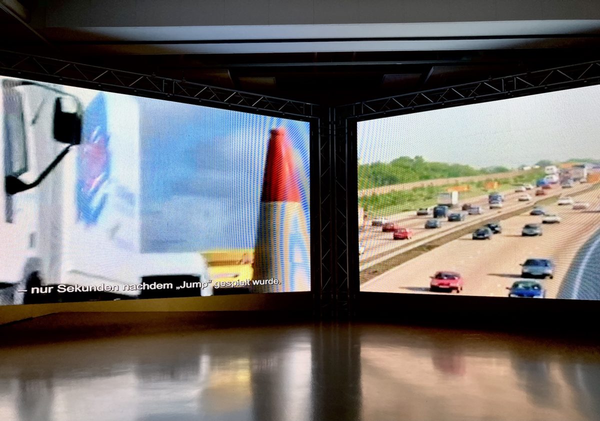 At the opposite end of the space, a series of canvases visualise degrees of separation between various public figures. In the adjacent space, the video essay Cayendo juntos en el Tiempo (Falling Together in Time) begins with Van Halen’s Jump and ends with… well, who knows? Along the way, we’re offered a sprawling web of tenuous, delightful, possibly meaningless coincidences connecting rock stars, truck drivers, and Muhammad Ali. It’s a work that pokes at the boundaries of what constitutes relevance, where the footnote becomes the story and causality is just another kind of fiction.