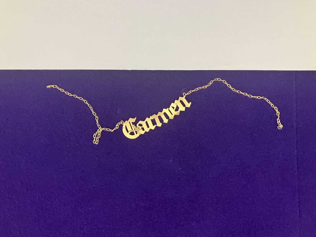 Almost as though it had been manifested, the ornate keepsake (or at least its doppelgänger), missing for decades in Mexico, unearths itself in the corner of one of Germany’s oldest art museums. Mario García Torres stages its quiet return – or something like it – featuring a reimagined version of the song. The playful mixed media artwork Me encontre la cadenita (I Found the Chain) centres on a necklace positioned at the edge of a purple carpeted room accompanied by an immersive soundscape built around the iconic song and reinterpreted by singer-songwriter Marion Raw. Overhead, the room’s low ceiling softens into infinity.