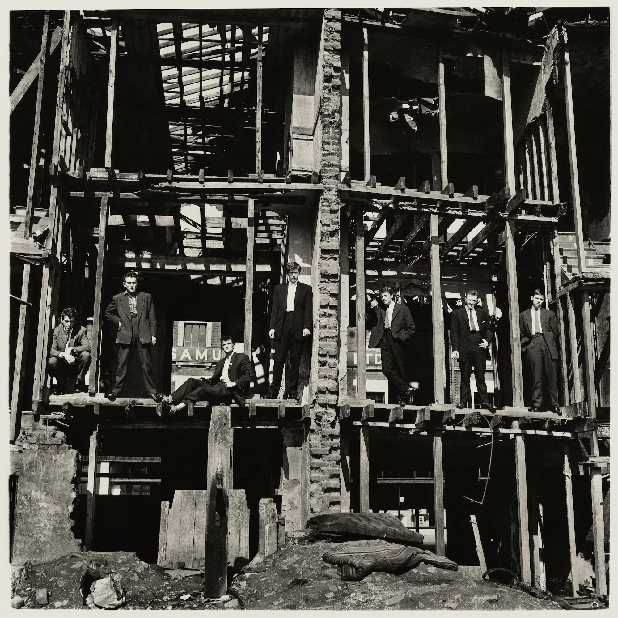 Examples of photographs taken during McCullin’s formative years, portraits such as ‘The Guvnors in their Sunday Suits, Finsbury Park, London’ (1958) and stark industrial landscapes––reflecting the grim realities of crime and unemployment in Northern England in the 1950s and 1960s––serve to demonstrate the photographer’s innate ability to capture sorrow and dignity in equal measure, finding poetry within bleakness, serenity within desecration.