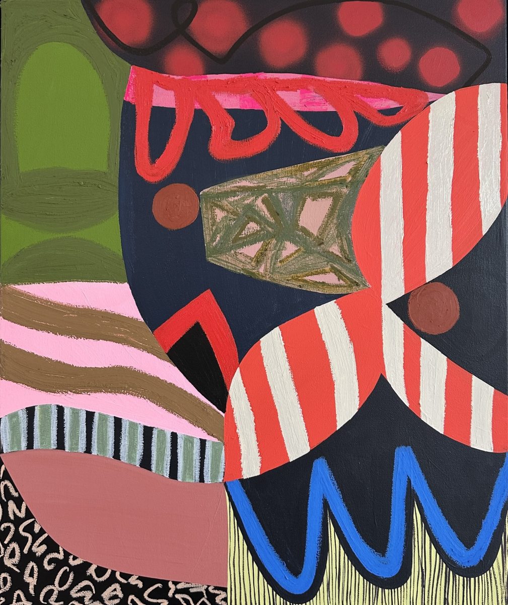 The new body of work brought together here, cohesively presents an entry in Studio Wolffia’s visual language. Something central is shape and form. These abstract curves and lines, blobs and cut outs brim with energy. Like cells in a petri dish wrestling for attention and presence. To the artist these forms reflect thoughts, feelings and moments. The canvas an internal and external mirror of the artist’s now – both psychologically and emotionally. The titles of the work – drawn from the artist’s journals – are equally personal and symbolic.