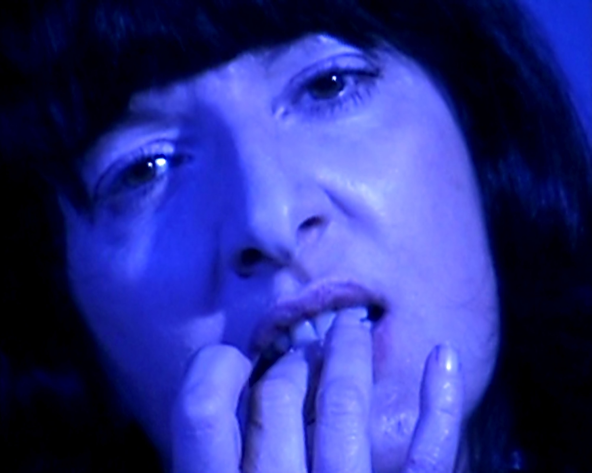 In ‘Blue Period’, Abramovi? is again shown in close-up, this time under a monochrome blue filter. As a looping pop song plays, she expressively bites her fingernails. Her saliva-coated fingertips gleam in the light, rubbing against her teeth. Her gaze flickers between apathetic detachment and raw suffering. The act becomes a visceral choreography of discomfort and tension, with the colour blue evoking emotional coldness, vulnerability, and energy transformation. This piece, like much of her earlier work, tests the boundaries of the body in search of transcendence.