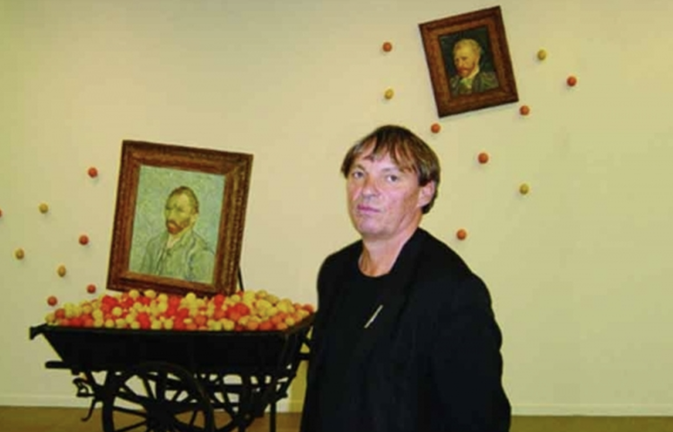 In the mid-seventies he started incorporating in his installations original paintings borrowed from museum collections. The Triptychos Post Historicus, realized in numerous museums around the world, unite in a harmonious synthesis high art, everyday objects, and fruit. The artist’s statement “Louvre is my studio, street is my museum” expresses both the dialectical and transgressive nature of his oeuvre. In the last thirty years, Dimitrijevic has realized over 500 Triptychos Post Historicus, with paintings ranging from Leonardo’s Madonna to Malevich’s Red Square, in numerous museum collections including the Tate Gallery, London, the Louvre, the Musee National d’Art Moderne Paris, the Solomon R. Guggenheim Museum New York, the Musee d’Orsay, and the Russian State Museum, St Petersburg, amongst many others.