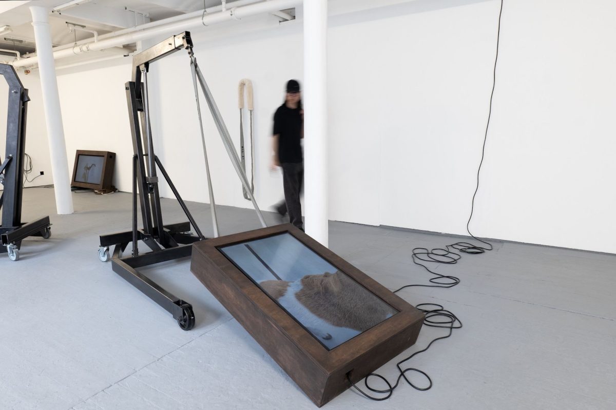 Working across sculpture and digital media, Homann’s ambitious presentation focusses on a pair of horses the artist cared for from childhood into early adulthood. Handmade vehicles gently elevate and protect the memories of these cherished animals, embodying the quiet strength of carrying what we cannot let go. Painstakingly recreated and reanimated, the horses become physical beings in their own isolated digital worlds. Echoing the tradition of the equestrian pas de deux, where two horses