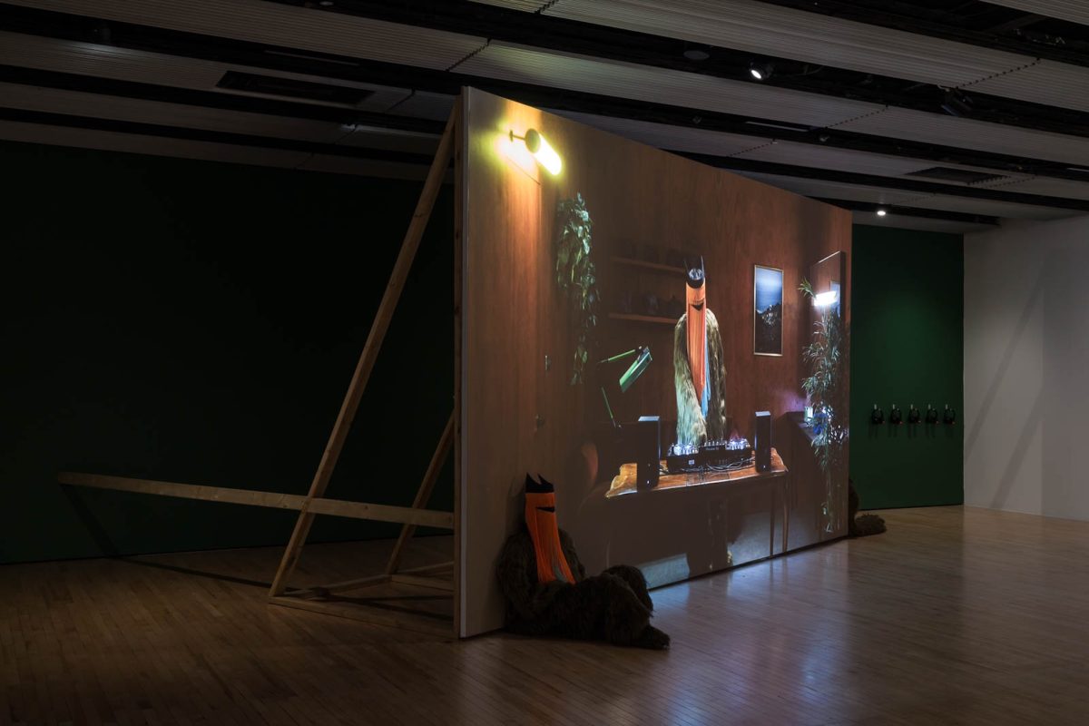 The exhibition features new iterations of two existing works: Valley in the Minibus (2024) and The Sorrowful Football Team (2025). Valley in the Minibus explores the concept of ‘non-places’, defined by French anthropologist Marc Augé as transitory spaces that people pass through (such as airports, motorways, shopping centres) and become anonymous. Building on the original work and live event that took place over several weekends, a group of strangers travel through a winding landscape in a van with a creature-like masked and costumed figure. A new video commission will introduce the same masked figure DJing completely alone in an anonymous space. Three full body, long haired costumes and veiled masks used in the work are on display as part of the installation. Present but disconnected from the audience, the presentation highlights the artist’s interest in creating connections and intimacies through isolated experiences.