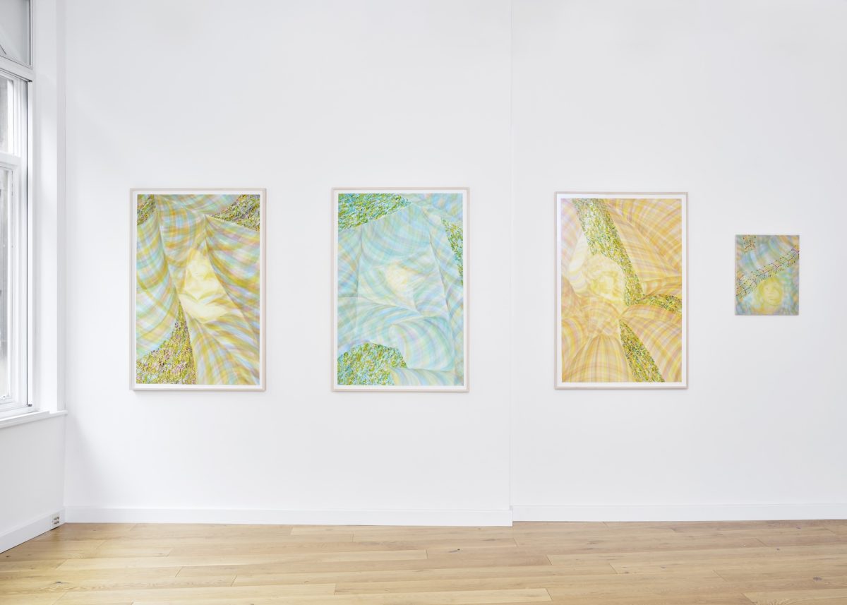 Tilson works across painting, printmaking and installation, layering colours to conceal, reveal and camouflage herself in vibrating spaces, where the body becomes part of a kinetic pattern-scape. Layers are built up like a tapestry or excavated like a fossil, each mark weaving and punctuating a patterned world. Accents of colours clash and hum in a way that feels dazzling and disorienting. Fabrics fold and unfold, patterns shift across these surfaces, becoming spatial and performative, with each world informing the others. Tilson’s solo exhibition Staged Surfaces (October-November 2025) will be her fourth presentation with Cedric Bardawil, London.
