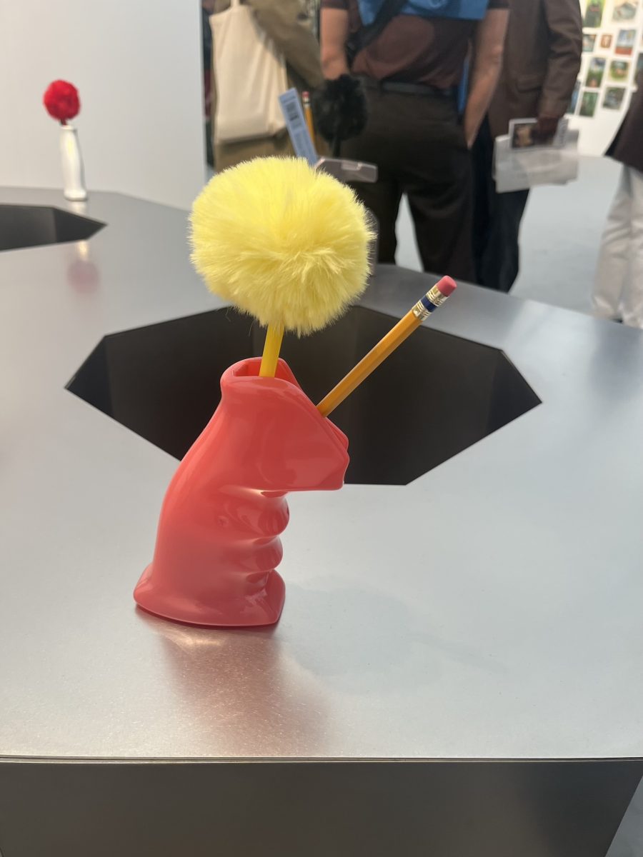 At Frieze, Wielebinski unveils a new series that deepens his exploration of the aestheticisation of violence. Evoking a fairground shooting booth, the installation centres on resin sculptures cast from real gun grips — objects that shimmer between allure and menace. They rest on a gaming table shaped like an infinity symbol, drawing a chilling parallel between the spectacle of American sports and the unending cycle of gun violence that haunts its schools and communities.