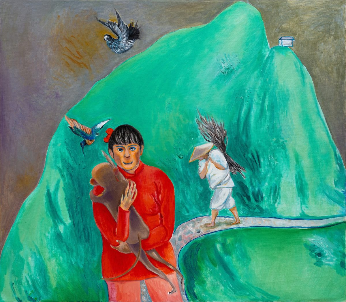 Featuring twenty new paintings and a group of sculptures, the exhibition showcases Duan’s recent explorations of narrative form and symbolic displacement. The title derives from the classical motif of yúqiáo (“the fisherman and the woodcutter”), a pair of reclusive figures that has appeared repeatedly in Chinese literati painting and philosophical writings since the eleventh century. Traditionally, they are depicted as sages standing at a remove from worldly affairs—symbols of a transcendent relationship to nature, history, and time. Duan, however, does not merely reiterate these lofty associations; instead, she seeks to dismantle the unity and coherence that tradition has imposed upon them.