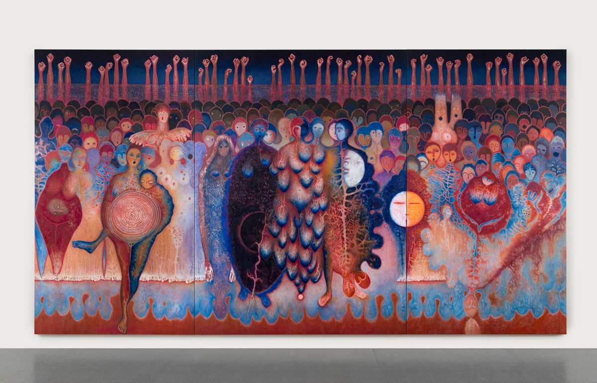In the Meridians Sector, Peter Blum Gallery will exhibit the monumental painting by Luisa Rabbia entitled, The Network. Spanning almost 18 feet (5.5 meters), it is born from an urgent response to social and political upheavals undermining women’s rights. Inspired by Italian painter Giuseppe Pellizza da Volpedo’s Il quarto stato (1901), Rabbia transforms the march of workers into a collective of women advancing in protest and solidarity.