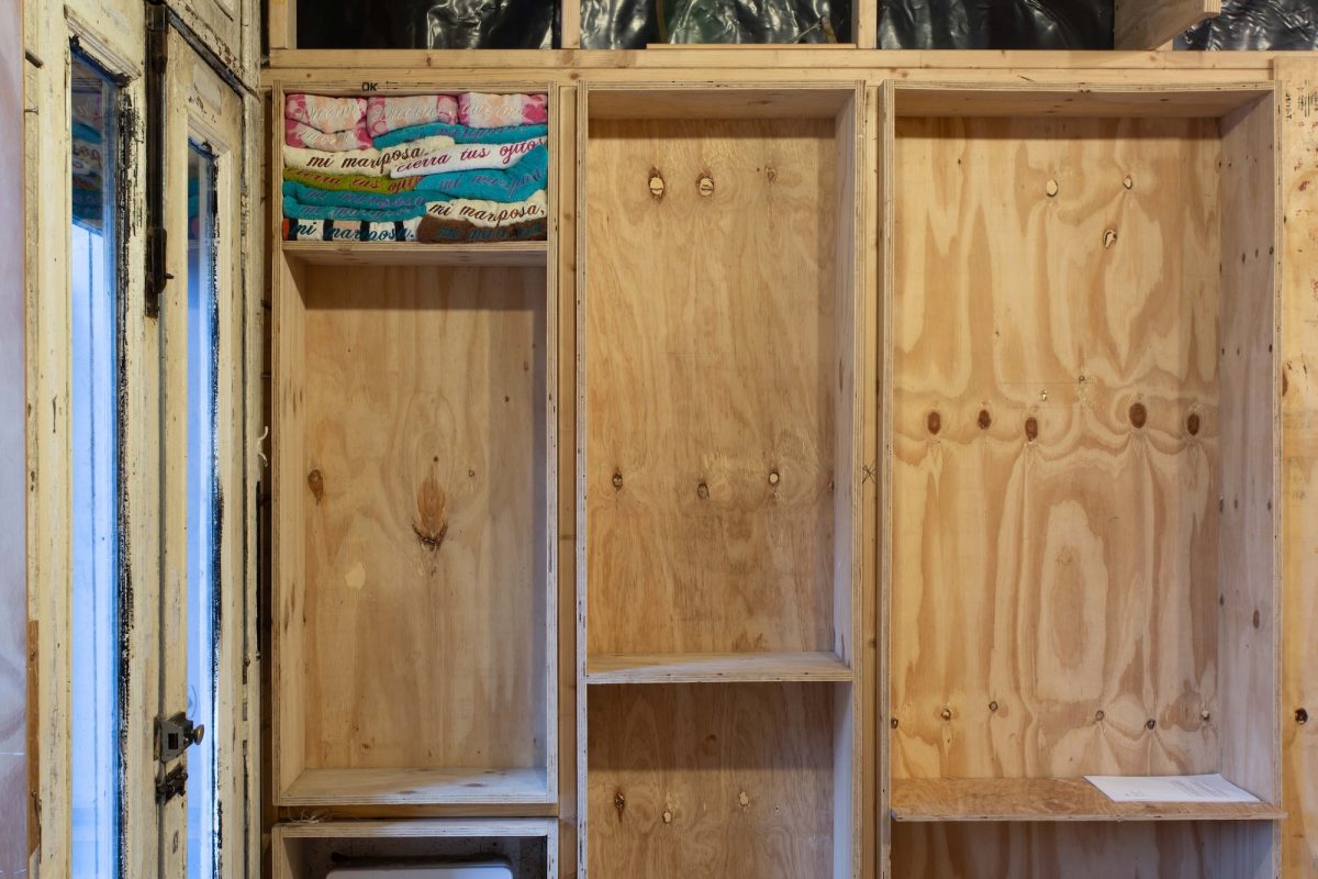 To be all up front: I am a fan of Renata Ottati. Girl! – the way she gives a fat-ass form to the dumb things that linger and replay over and over and over again in her mind is phenomenal – I fucking love it. Based between Guayaquil (Ecuador) and Glasgow (Scotland) – with artworks featuring in recent exhibitions in Miami and Oslo – Ottati often works with ready-mades or rather remade ready-made-like forms; she likes the ‘loud silences’ in the otherwise mundane, ‘the disappearance and resurfacing of value through distance’, to quote some online sources. Appearing familiar yet eerily out of context, occasionally OTT and lavish in energy, Ottati’s work questions the abject face of things – disused display counters, the kind you might see blocking thoroughfares in shopping malls, as with Held (2025), or a massing of jewel-tone party boxes, think community centre kids party style gifts unusually given to each young guest, ¿Preguntas? (2024) [Questions? (2024)] – bringing a sense of human experience back to the stuff we overlook and disregard.