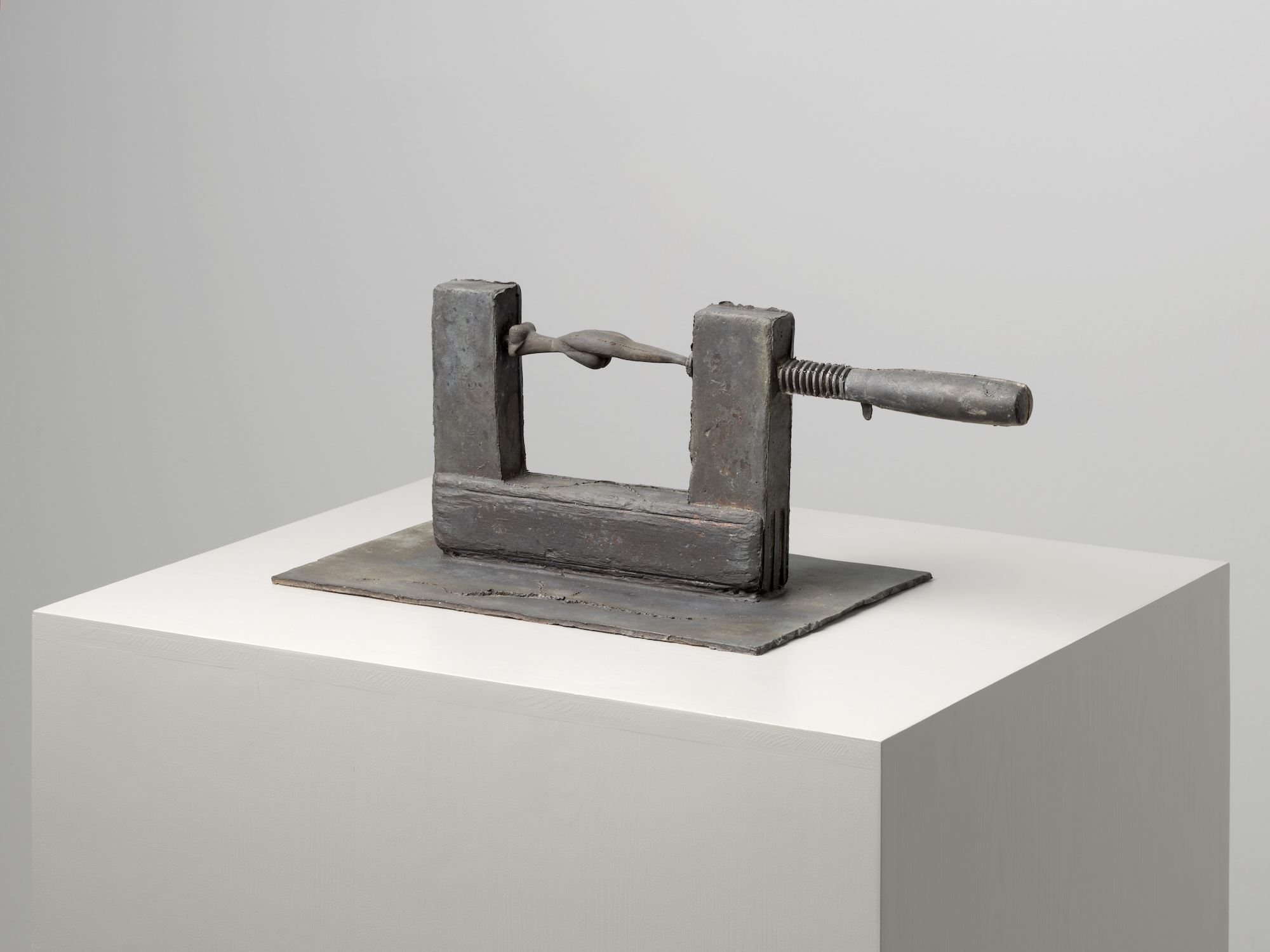 The bathtubs explore warmth as a sculptural material, an inherently paradoxical pursuit given its formless nature. The first, 28cm-long bronze iteration, Mammoth Tooth, Framed (1961), would later be recast to form part of the ensemble Bathtub for a Heroine (1984). Here, it is combined with an electric immersion heater, whose cables protrude outwards into space as though to evoke the necessity of connection, as well as a vertical element – part figure, part chimney – representing the heroine. In this dense sculptural constellation, the mammoth tooth becomes the sculptural core, anchoring the work in deep evolutionary time, while the heroine embodies transformative human agency.