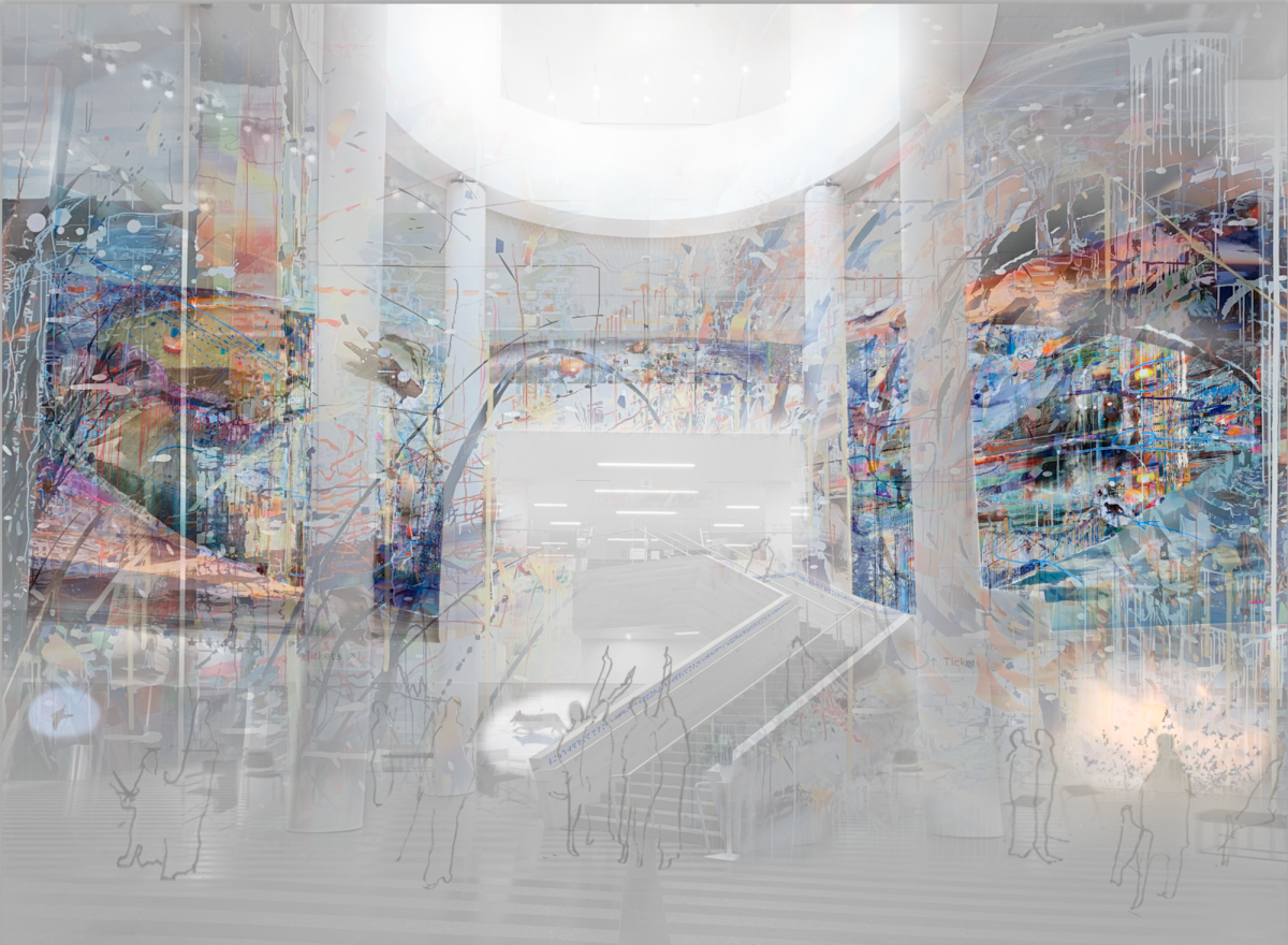The installation begins on SFMOMA’s ground floor atrium with two 27-foot-tall paintings flanking the museum’s grand staircase that explore the very construction and decomposition of images as they form, dissolve and settle into memory. Sze’s work marries the museum’s architecture as she continues her investigation of image-making systems and images in flux. Dickinson’s poem will be included in braille along handrails in visitor elevators, as well as on the stairway in the atrium. Streams of projections and an enveloping soundscape immerse visitors in the atrium, and as they ascend to the Floor 3 landing, where a third painting will be installed. As audiences move throughout the spaces, digital imagery and sounds of nature will be activated, engaging visitors in what Sze calls an “architecture of belonging.” The constellation of analog and digital images will shift in scale throughout the various architectural spaces, creating live moments that respond to the viewers’ presence. The ever-changing flow of people will also alter the velocity and tenor of the audio-visual landscape, contributing to the work’s generative rhythm and choreography.