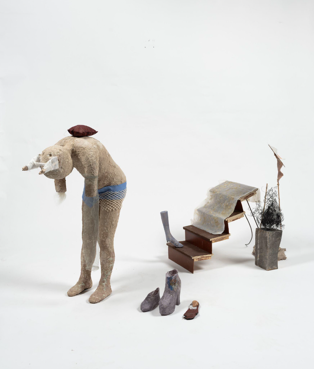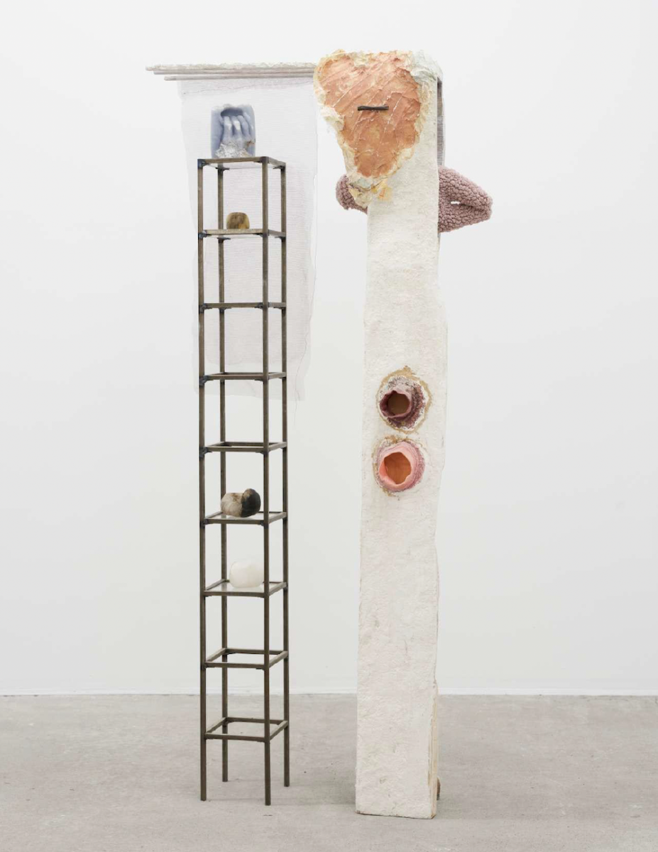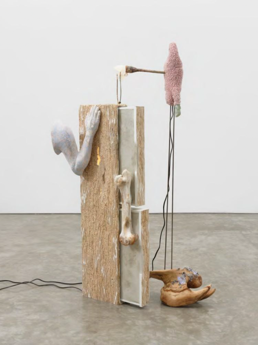 My magnum opus from 2020 basically asserted the ultimate failure of language to relay meaning or enact justice, so when I evoke text, it is often from an unraveled place. It has been some time since text appeared in my work, as my process of making sculptures and paintings has been largely nonverbal for the last couple of years. Previous work incorporated mostly appropriated texts: from Jean Rhys, Clarice Lispector, Ovid, Ezra Pound, Calvino, Anne Carson. Poetry and literature help me live life–that is, they save me–which on a fundamental level allows me to make art. I write very sporadically, without any discipline. I feel I need an audience for it. Sometimes I go half a year between periods of writing. Sometimes I sit down and write in response to my finished sculptures and paintings, a kind of private ekphrasis, and those texts end up being quite rhapsodic. But for the time being, their home is unknown.