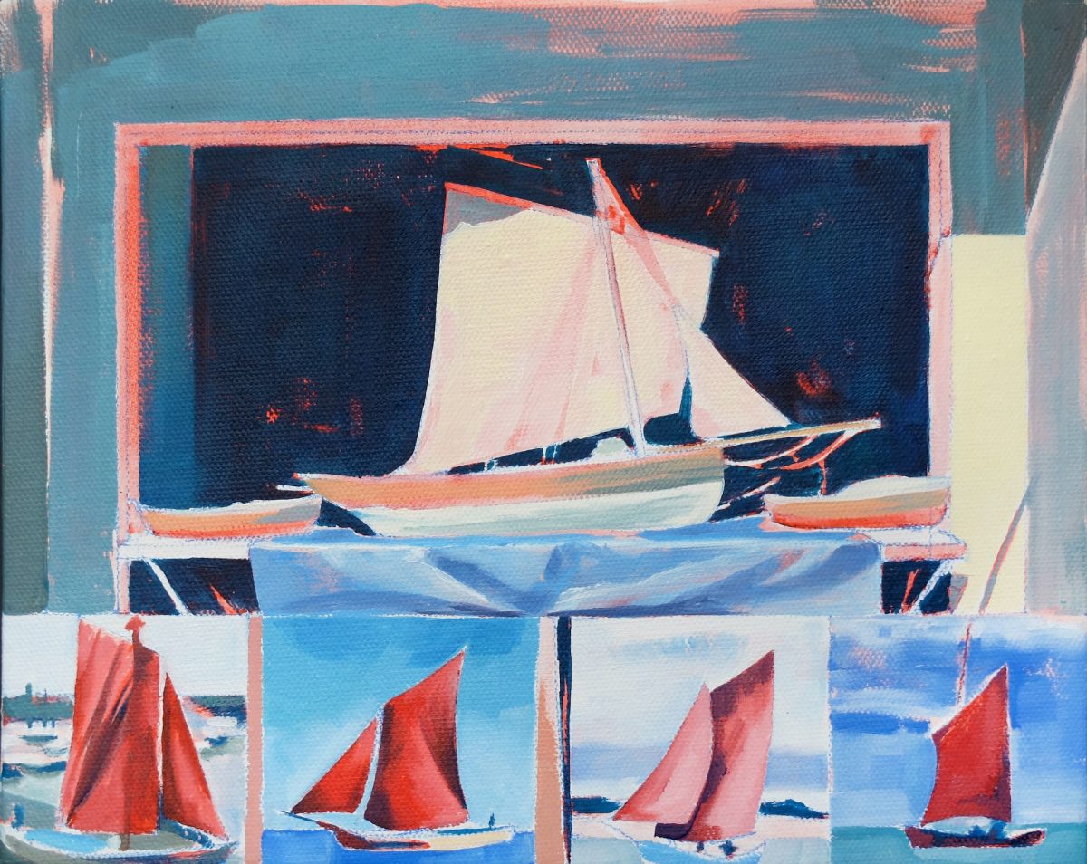 Faith Hughes (b.1998) is a British-American artist based in Los Angeles. She graduated with a BA in Fine Art from Goldsmiths in 2020. With a practice spanning painting and sculpted craft, Hughes works from extensively researched found imagery as a means to distill her experience of living and remembering. With milk glass, ceramic tile, wood block or tin foil as her unique choice of painterly ground, she shifts through vintage film footage, forgotten home movies and archival instructional videos to tease out an image to immortalise as object, regenerating meaning through making.