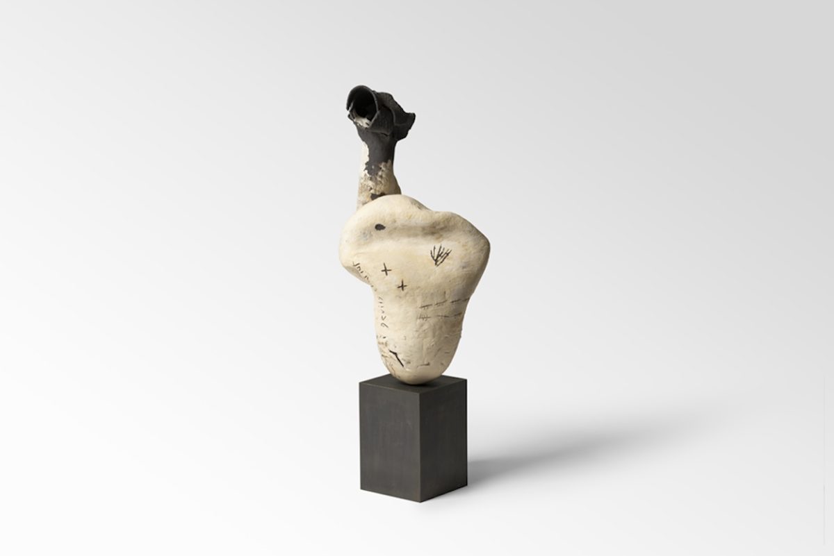A work from the Armour series (The subtle rules the dense, 2023) – a chestplate – will be displayed in the Manor on a pedestal. Incorporating both fragility and strength, the chestplate is a mix of inspiration from West African body masks as well as Roman soldiers, a connection to Italy, where Collings-James first discovered the power and beauty of ceramics during an artistic residency in 2014.