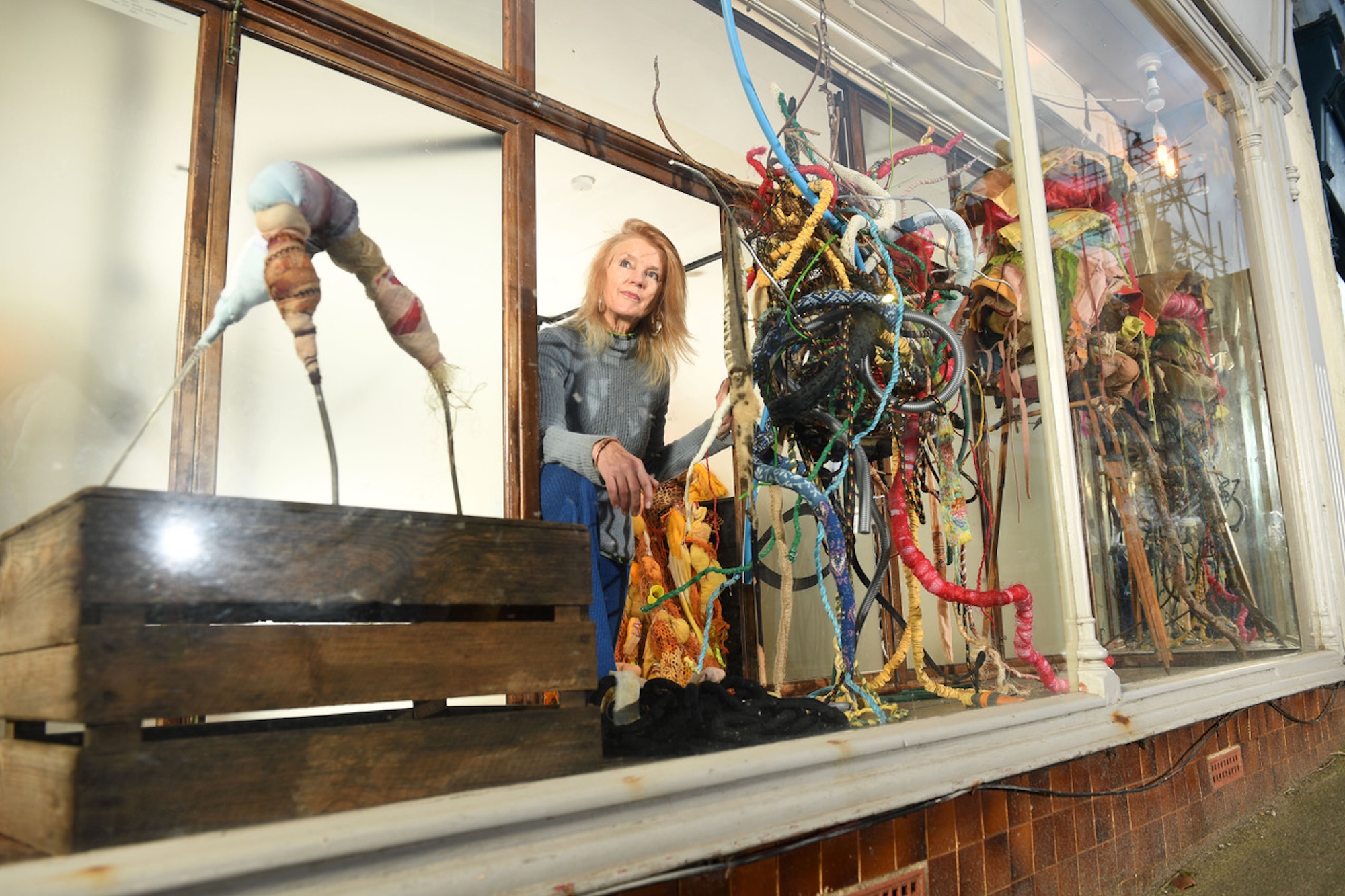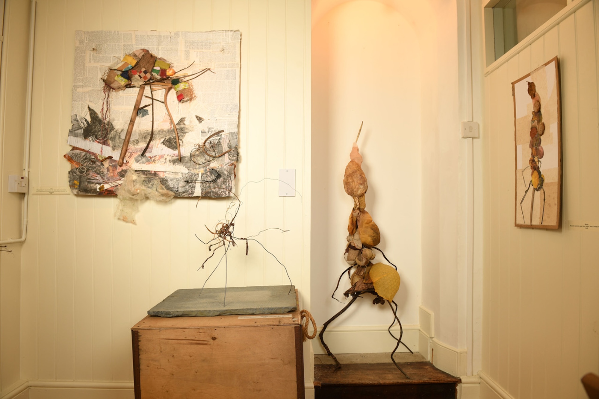 Sustainability underpins the practice. Discarded objects are reworked and reimagined, positioned as non-hierarchical materials within complex assemblages that blur the boundaries between sculpture, drawing and installation. Organic, sometimes bodily forms emerge through contrasts of delicate and industrial elements, suggesting vulnerability alongside endurance.