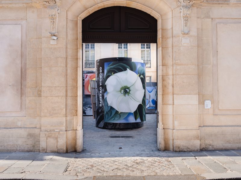 Curated and designed by Rei Kawakubo, Georgia O’Keeffe by Comme des Garçons takes over the metal pillars of Dover Street Market Paris’ courtyard